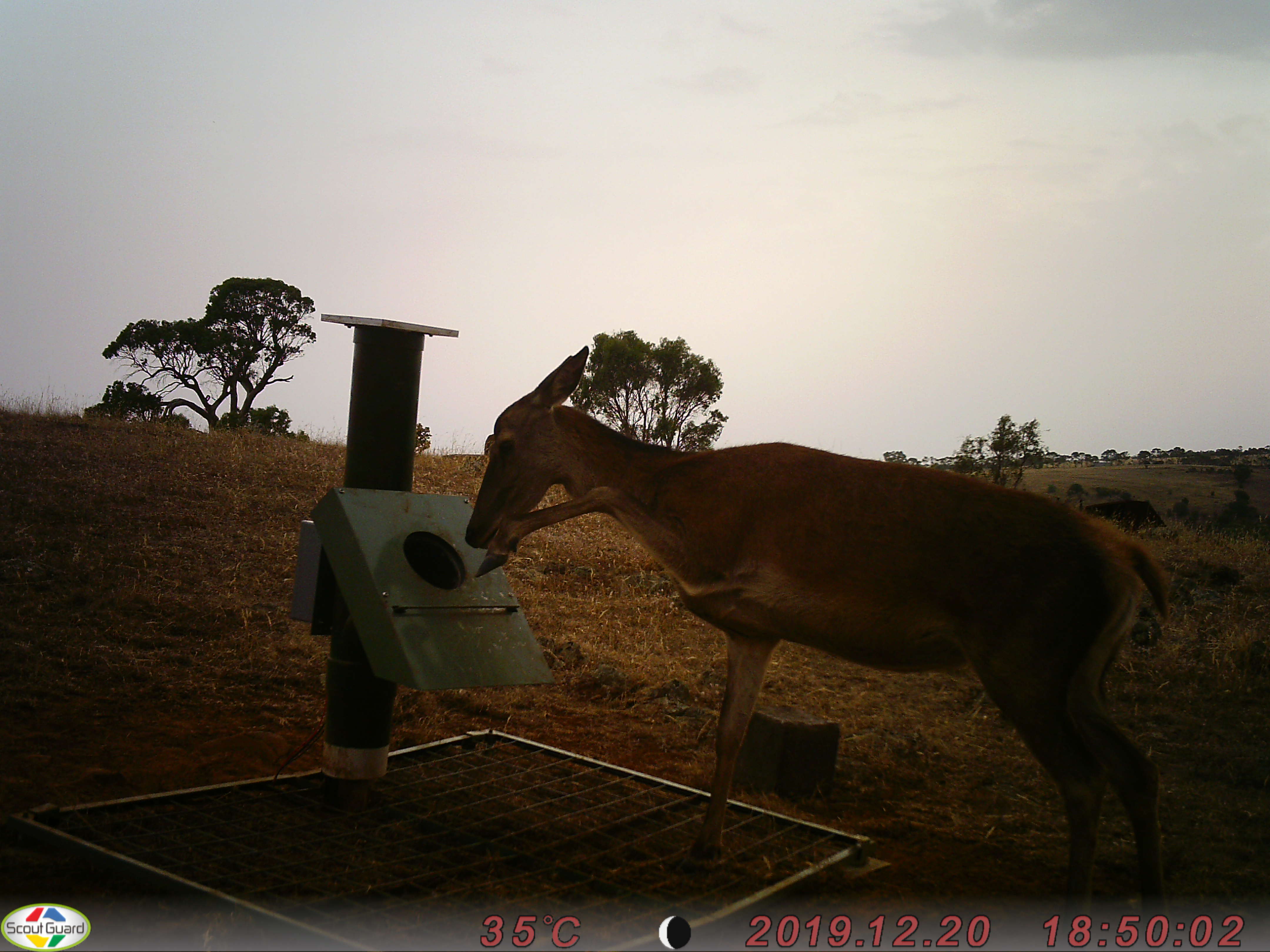 It turns out the emu’s long neck is no match for the feral deer aggregator design, with new research results showcasing that adult emus can access the feeder from behind, without needing to step on the mesh floor, which is designed to close the feeder when stepped on.
